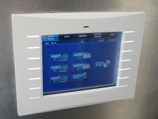 - Brands installed – Crestron Control System (In-wall, remote & Apple iPad/iPod Control), Loewe, Pioneer & Samsung HD LCD/ plasma TV screens, Bowers & Wilkins in-ceiling/ in-cabinet speakers, Rotel multi-room power amplifiers, Extron audio & video distribution switching and a mixture of source equipment from – Apple iPod docks, Apple TV music server, Sky HD receivers to Denon Bluray High definition DVD players & surround sound amplifiers. Business class wired/wireless networking & telephone systems.